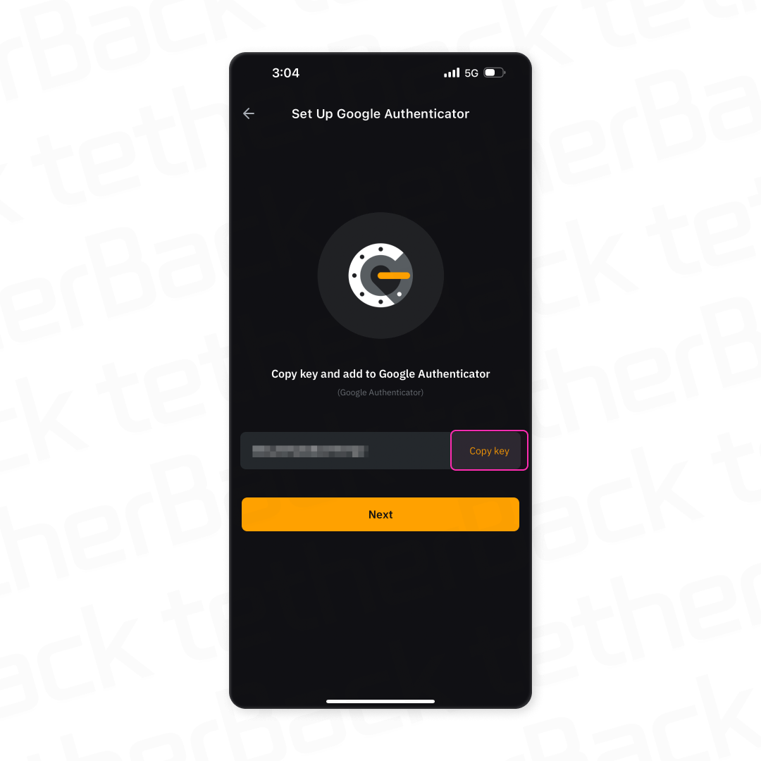 바이비트(Bybit) 앱에서 [ Copy Key ]를 눌러 16자리 OTP Key를 복사해 주세요.