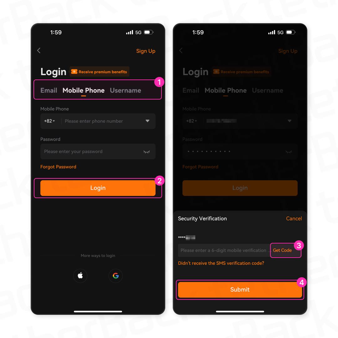 ③ [ Get Code ]를 눌러 가입 수단으로 인증코드를 발송한 뒤, 받으신 인증코드를 입력해 주세요.