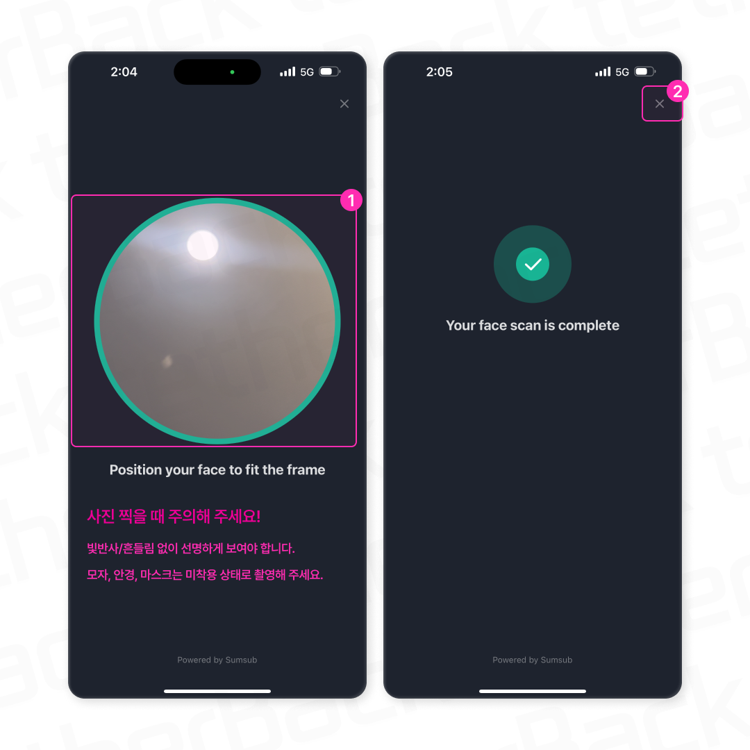 ② 얼굴인식이 완료되면, 우측 상단 [ X ]를 눌러주세요.