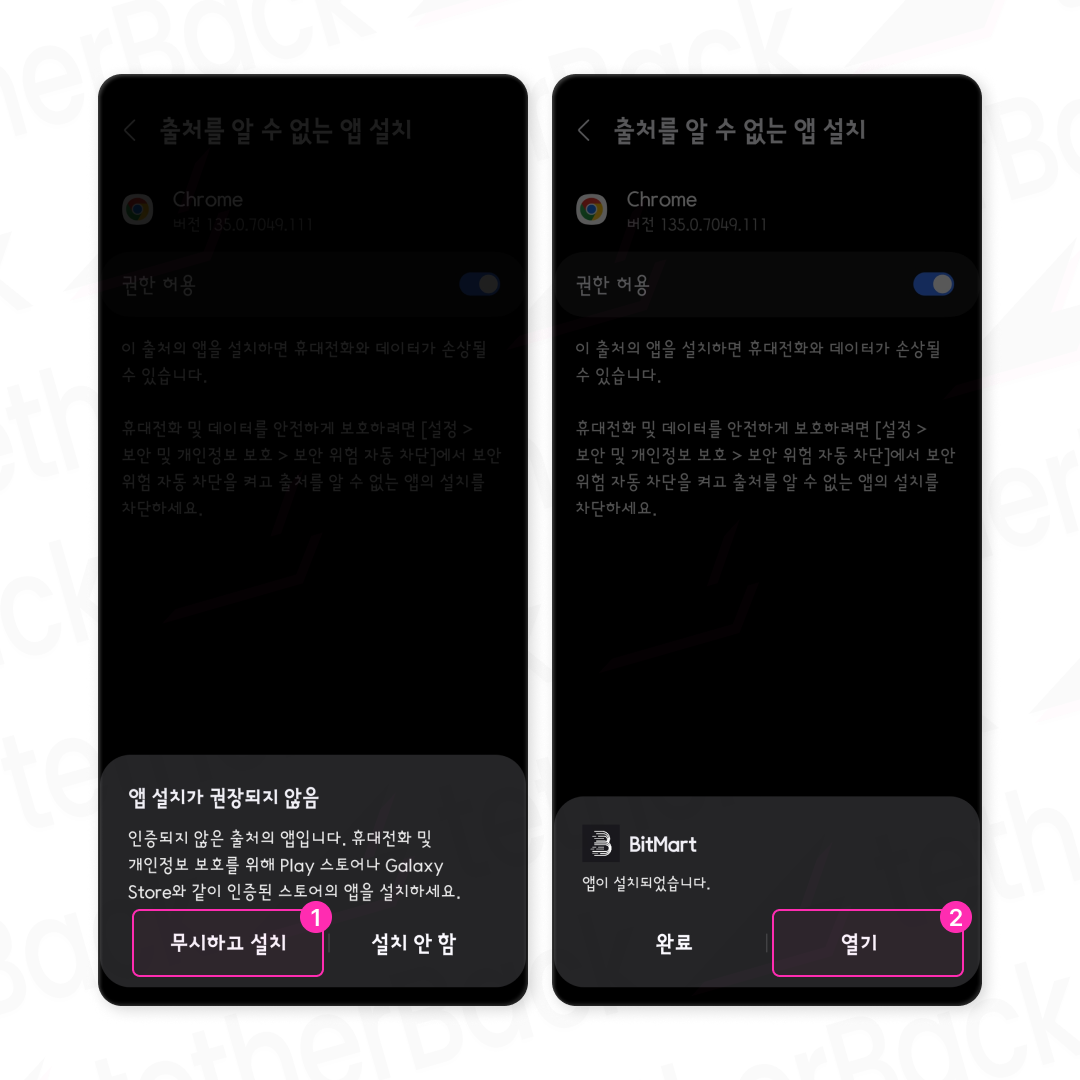 ① 설치를 진행하려면 [ 무시하고 설치 ]를 눌러주세요.