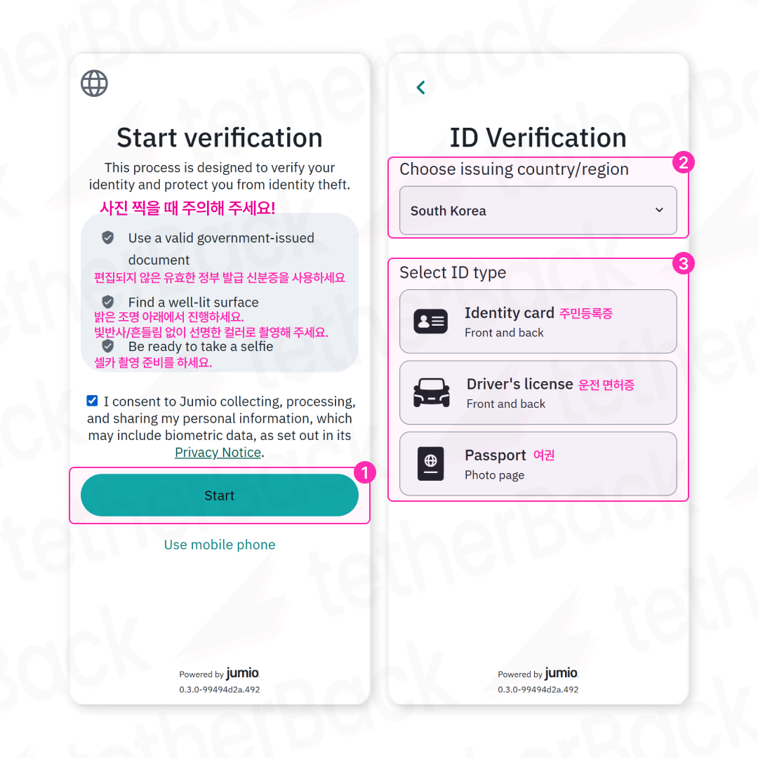 ③ ID type은 주민등록증(Identity card), 운전면허증(Driver's license), 여권(Passport) 중 하나를 선택해 진행합니다.