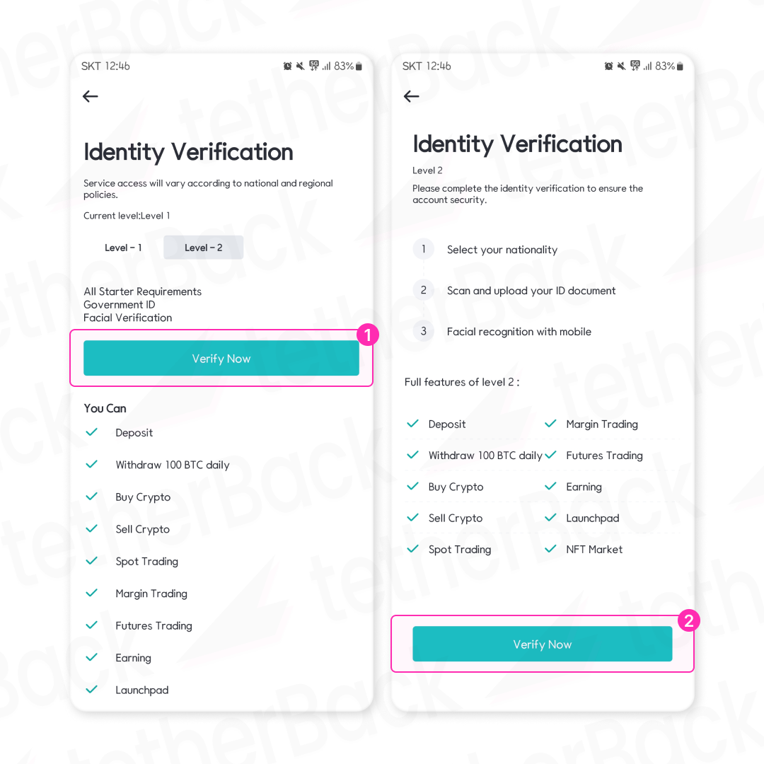 ① [ Verify Now ]를 눌러 Level - 2 인증을 진행하실 수 있습니다.