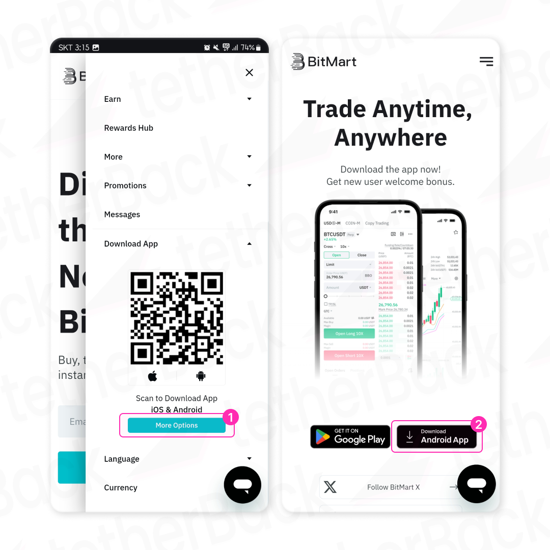 비트마트(BitMart) 앱을 설치하기 위해 모바일로 접속해 주세요.