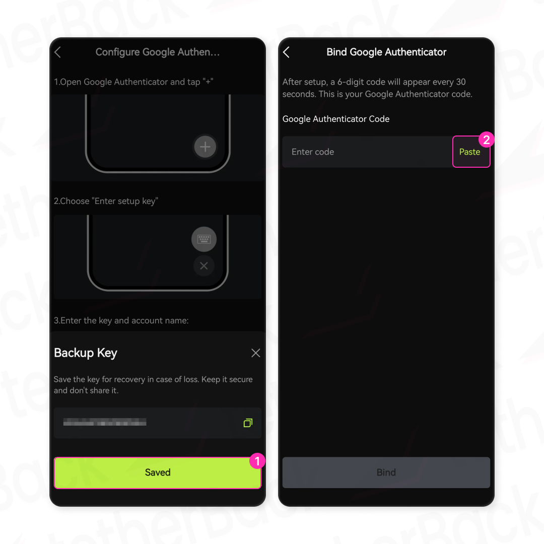 ② 'Google Authenticator code'에 [ Paste ]를 눌러 붙여 넣어주세요. 코드 유효 시간이 짧으니 빠르게 진행해 주세요.