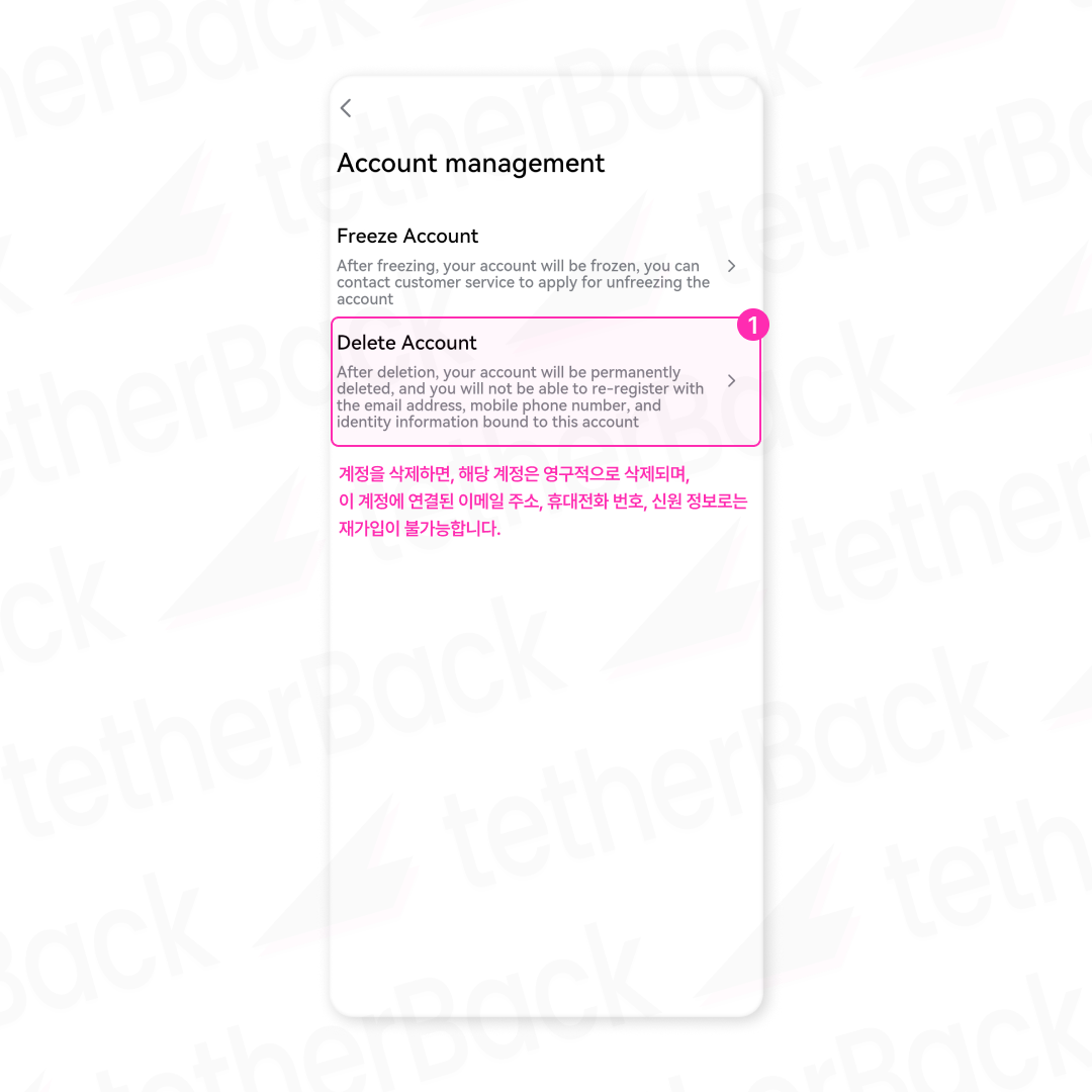① 계정 탈퇴를 위해 [ Delete Account ]를 눌러주세요.