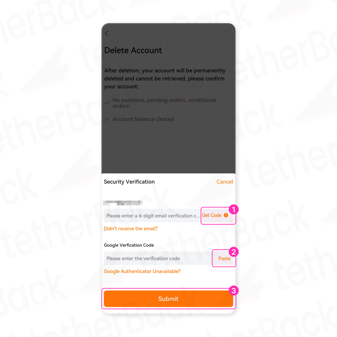 ① 탈퇴를 위한 요구사항을 확인한 후, [ Delete confirmation ]을 눌러주세요.