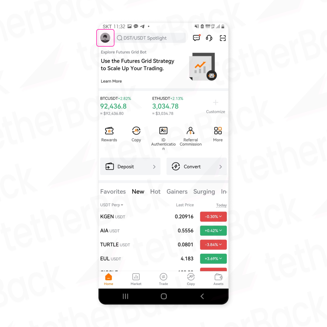 안녕하세요. 트레이더님을 지원하는 테더백입니다.테더백 페이백 혜택을 적용받기 위해서는 거래소 UID 연동이 필수이므로멕씨(MEXC) UID 확인하는 방법을 알려드릴게요!차근차근 따라 해 주세요.